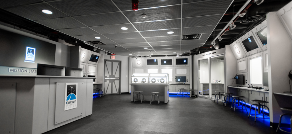 Sitting around June’s dining room table, the families worked alongside artist Bob McCall and astronauts Kathy Sullivan and Richard Garriott to create the early sketches of a space that would encourage students’ creativity and teach vital life skills like teamwork and critical thinking. “We used the look and feel of true space exploration backdrops as our inspiration,” said June. “While not quite sure of the path to get there, we believed in what we were doing and knew we were about to embark on something magnificent.”